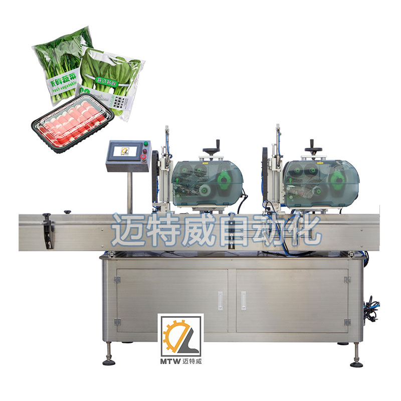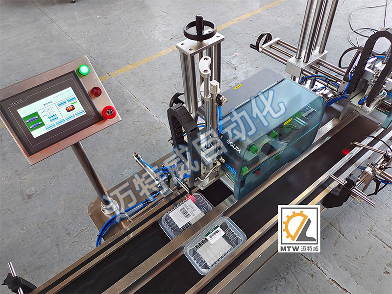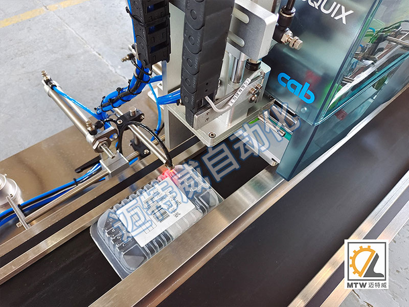 該設備用于瓶子、盒子、成型包、包裝箱等上平面的打印和貼標,可貼一張或兩張標??稍诳瞻讟嘶蝾A留標上在線即時打印生產(chǎn)日期批號、序列號、條形碼、二維碼、品名、專銷區(qū)等預設內(nèi)容并完成同步貼標。