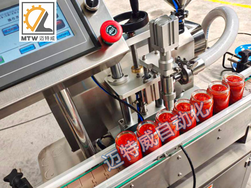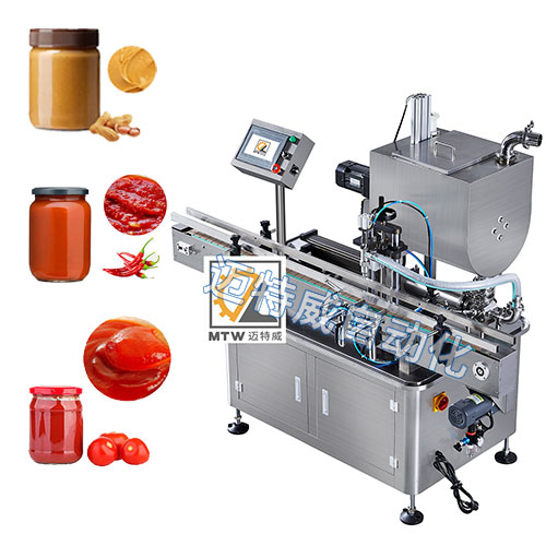 單頭伺服灌裝機采用伺服活塞定量灌裝,單頭灌裝,設(shè)備投入少,走瓶速度快,效率高,灌裝容量100-1000ml,適用于醬料、膏體、液體和粘性物料灌裝。