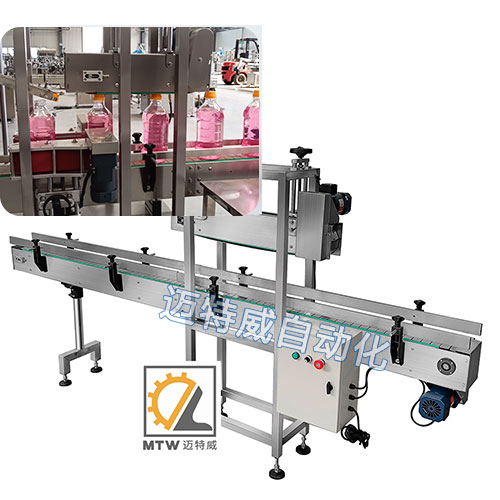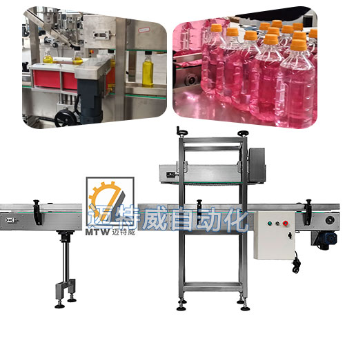 ● 通過調(diào)速電機(jī)變速調(diào)節(jié),使之履帶運(yùn)行速度與輸送線運(yùn)行速度同步,當(dāng)放置瓶蓋的瓶/桶通過傾斜的履帶,履帶給予適當(dāng)?shù)膲毫?,從而?shí)現(xiàn)瓶/桶封蓋達(dá)到密封的目的;