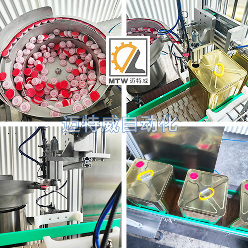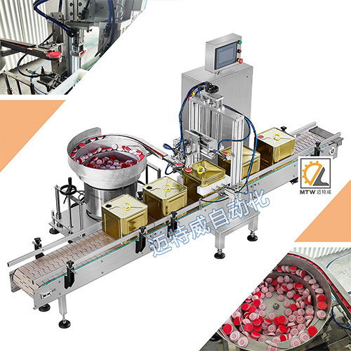 此款壓蓋機適用于機油桶塑料伸縮蓋的壓蓋。使用振動盤將瓶蓋送入瓶口,然后按下瓶蓋,將瓶蓋和瓶子緊緊密封。