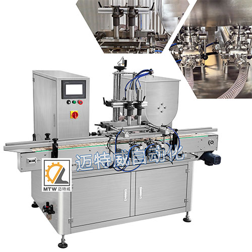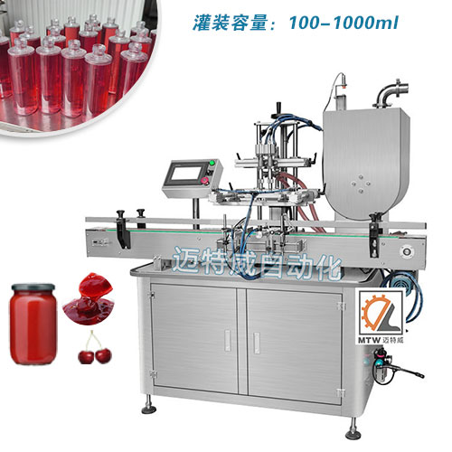 雙頭伺服灌裝機(jī)采用伺服活塞定量灌裝,單頭灌裝,設(shè)備投入少,走瓶速度快,效率高,灌裝容量100-1000ml,適用于醬料、膏體、液體和粘性物料灌裝。