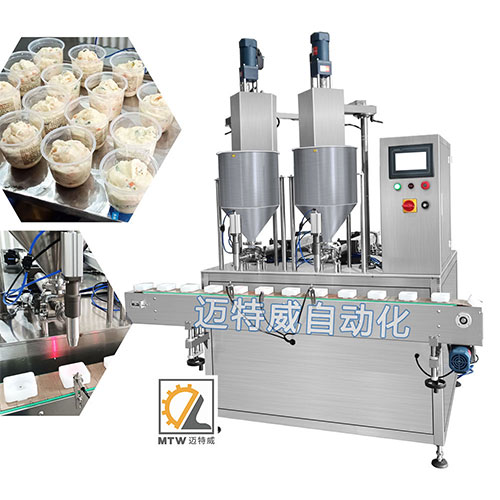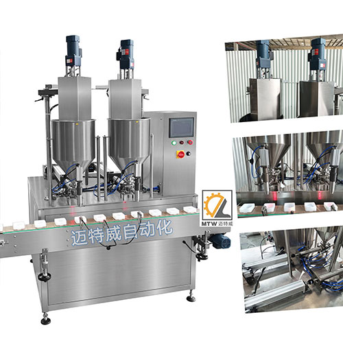 雙頭伺服灌裝機采用伺服活塞定量灌裝,雙頭灌裝,設(shè)備投入少,走瓶速度快,效率高,灌裝容量100-1000ml,適用于醬料、膏體、液體和粘性物料灌裝。