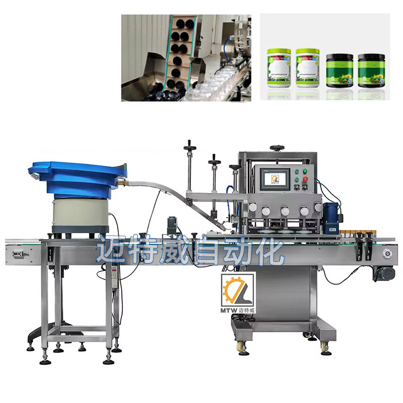 SC-R直列式旋蓋機主要適用于圓型、扁型、方型等容器的塑料螺紋蓋或無螺紋蓋的自動旋蓋。