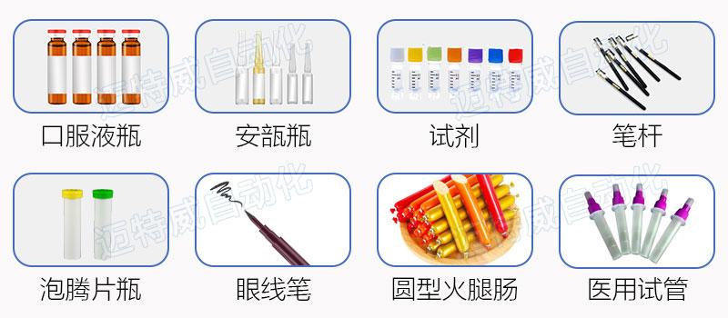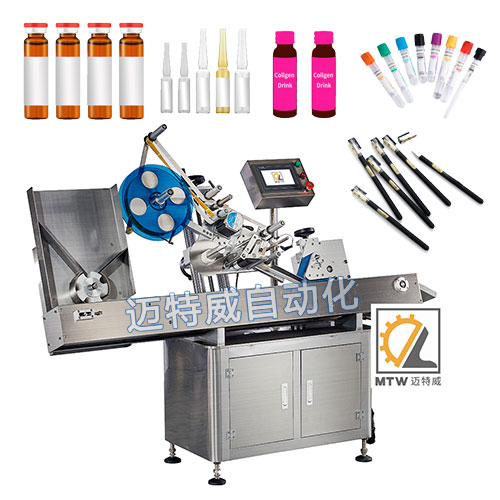 臥式圓瓶貼標(biāo)機應(yīng)用于醫(yī)藥、日化、食品、文具、電池等行業(yè)不易站立圓柱細(xì)長物體的自動貼標(biāo),如采樣管、試劑、安瓿瓶、西林瓶、采血管、泡騰片瓶、圓形火腿腸、唇膏、筆桿等。還可以根據(jù)生產(chǎn)需求在本機上配備自動裝盒機等。